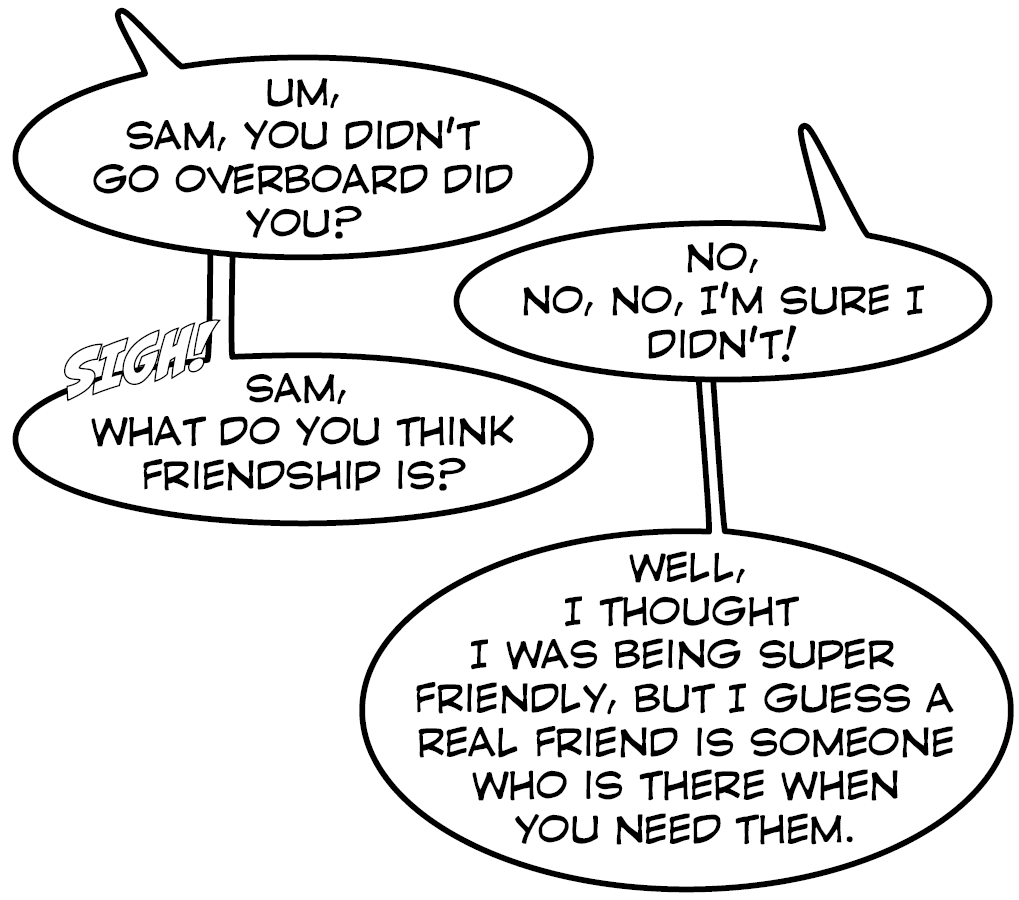 Here are some examples I have used in a previous comic. First a simple comment, shown above the character’s head.