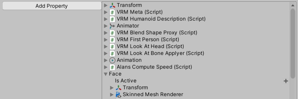 The negative of this approach is there are a LOT of properties that are added, most of which are zero. Another approach may be to use override tracks again to reduce the complexity of a clip, but I like the robustness of my current approach for now. I expect to reuse the same set of expression animation clips repeatedly — I don’t expect to be creating new expressions that often.