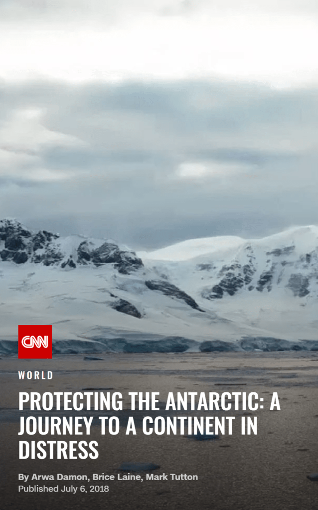 A web story is a series of pages you can tap through, where each page can have static (e.g. an image) or dynamic (e.g. a video or animated transitions) content. It is a vertical format intended primarily for viewing on a mobile phone, although full page desktop stories are also supported. The following web story from CNN on protecting the Antarctic shows a mix of still images and videos, overlaid with caption text.