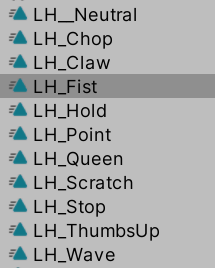 Hand poses are pretty easy – there are only so many of them. I have looked at video camera trackers and the LeapMotion tracker, but for my needs I think I am going to stick with HumanoidHandPoseHelper. It is good enough and it is reliable compared to the trackers I have tried so far. Unity makes it easy to layer hand poses over the top of say full body poses.