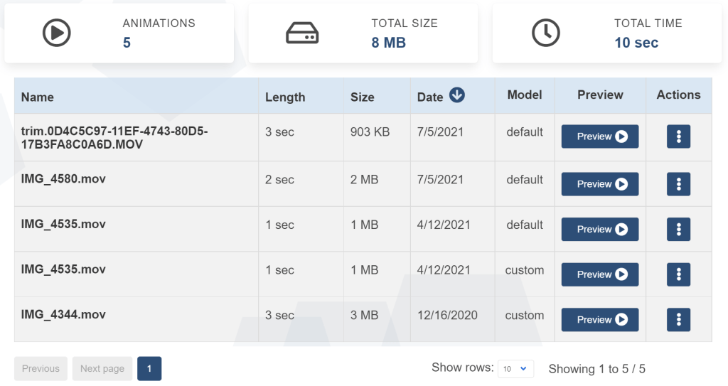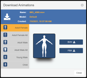 Deep Motion supports a number of tools. Here I am using the “Animate 3D” option which allows me to record a video on my camera phone, preview it online, then download a FBX file containing an animation clip. On the free account, you can upload 3 of your own models to use to preview the clip. Deep Motion offers a free level of service of 30 seconds per month so you can give it a go before signing up for a paid tier if you need the extra time.