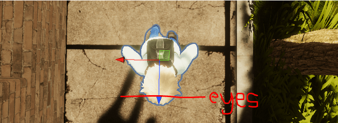 So why not aim the Cinemachine virtual camera at the second target between the eyes? The problem is when the character walks or runs, the head bobs up and down. Then end result is the camera bounces around too (tracking movement of the head), which is not very pleasant to watch. Using a point relative to the root of the character (with X and Y aiming offsets as required) results in a much more stable shot, which is why I name that target “eyes stable target”.
