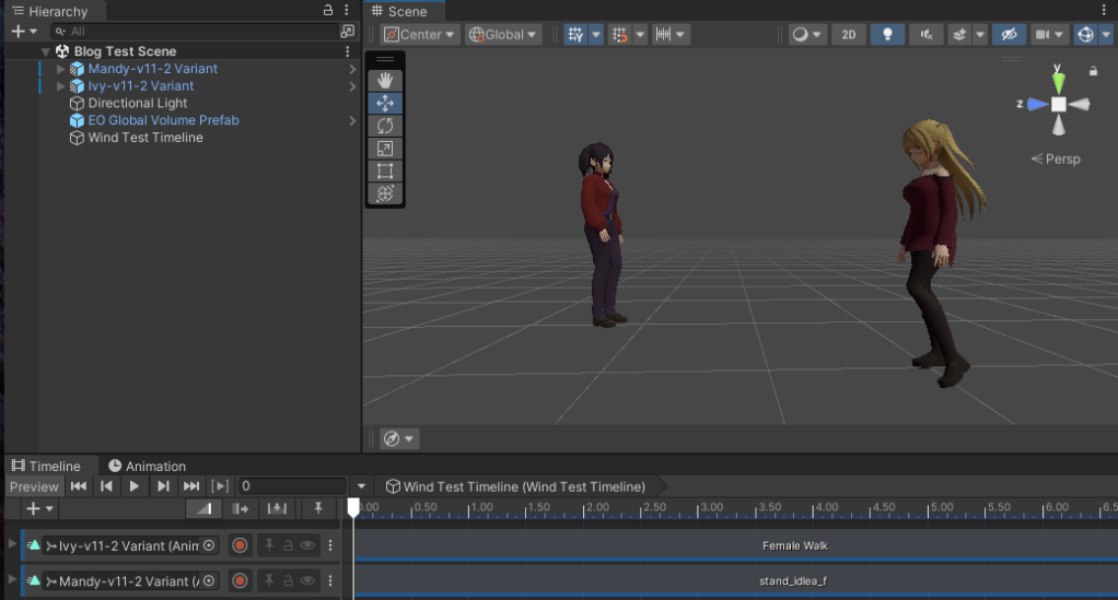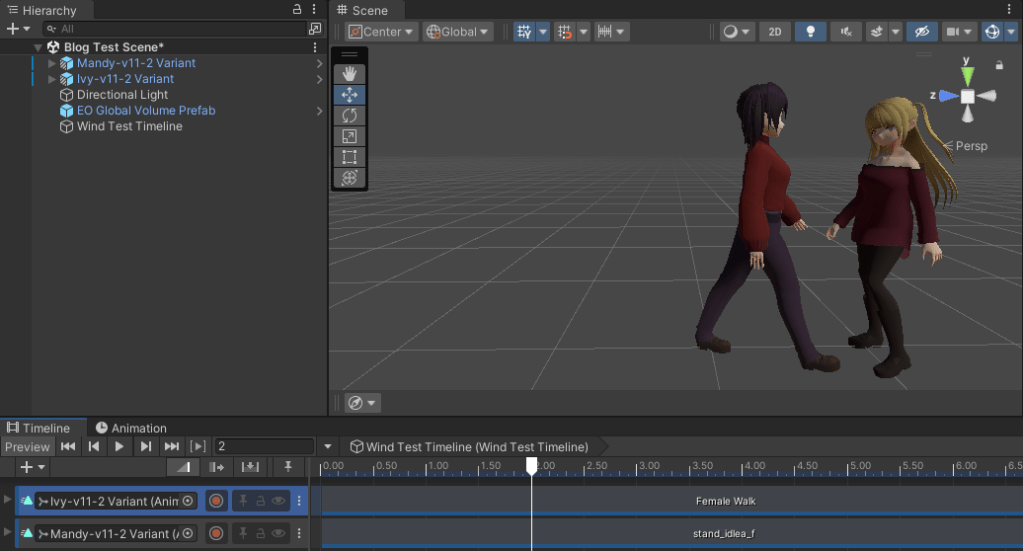 For example, here are two characters. I want Ivy on the left to walk up to and stop in front of Mandy on the right at exactly the 2 second mark.