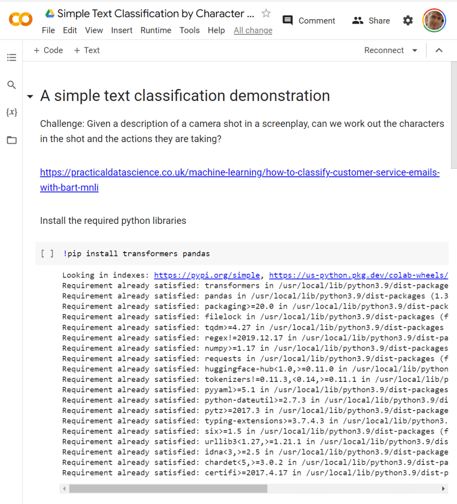 The above GitHub link is a link to a Google Colab project. You can read all the results from the GitHub page (it includes the output of running the scripts), or you can copy the project and run it yourself. Google Colab allows you to create Google’s version of Jupyter notebooks in Google Drive. It spins up a VM for you where you can run Python code. It’s pretty useful as its great for collaborating with others, or just as I did for saving a copy to GitHub. And each project is a clean environment so no need to worry about different Python libraries for different projects interfering.