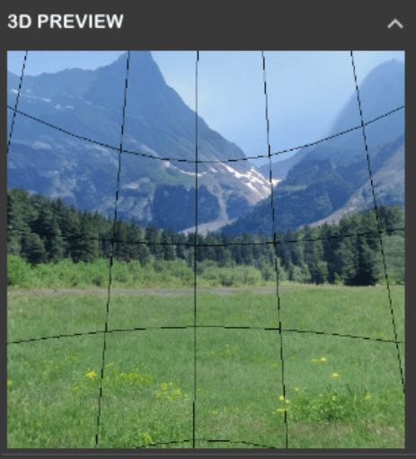 You can pan around the image using a 3D preview panel to get a feeling of how it would feel in a real project. (360 images are distorted near the top and bottom as they are wrapped onto a sphere where the top and bottom meet at a single point.)