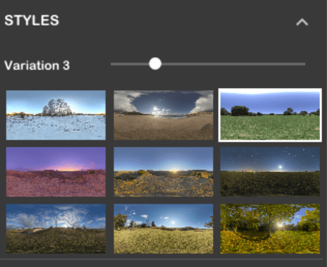 The most interesting settings are the styles and variations panel. You can pick a style (luscious vegetation, dry desert, etc) and a variation number for different versions of the generated artwork. You can try a few versions until you find one you like.