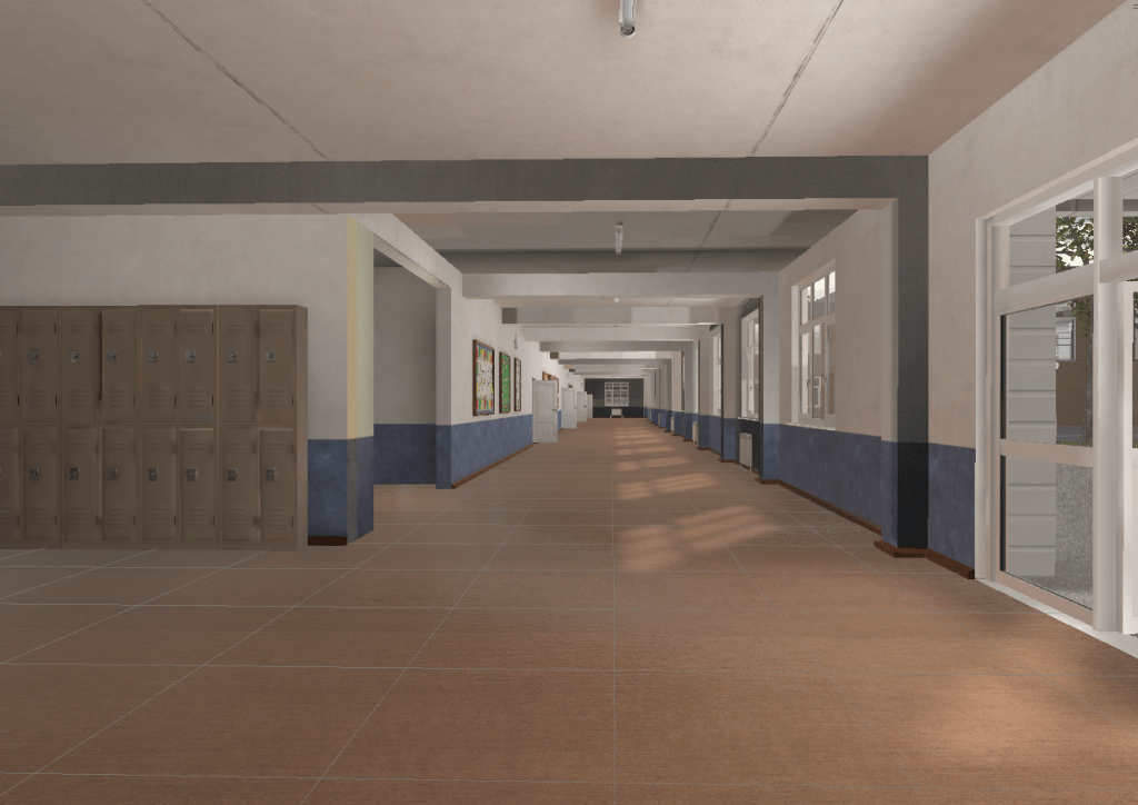 I had also upgraded the school from the default Unity “built in” render pipeline to the latest HDRP pipeline (with ray tracing off), fiddling with a few settings, but frankly just struggling to get it to work again as all the shaders are different. So the following is not a review of HDRP render quality, but rather a comparison (based on one example) of exporting a scene to HDRP and to Omniverse. The challenge with upgrading to HDRP is the shaders are different and the provided upgrade tool frequently failed. This meant I had to try and repair the shaders by hand (as a non-expert).