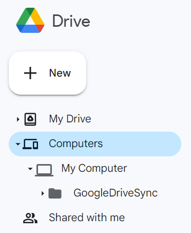 This new sync directory became visible under the “Computers” area just under “My Drive” on the Google Drive web page. So I get all the Google Drive sharing etc capabilities while getting the contents of my selected folder synced to the cloud. Nice!