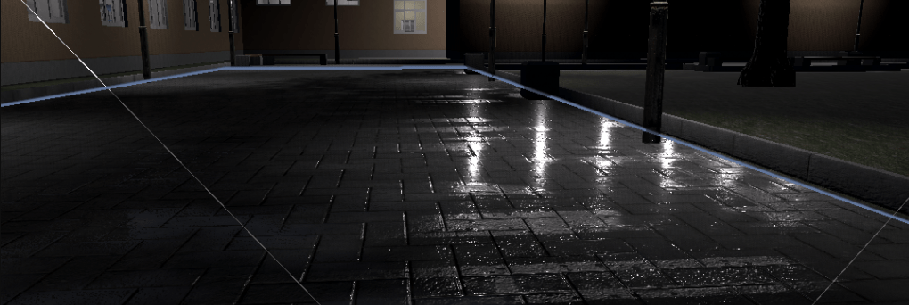 - How to use shaders or similar to show rain drops creating puddles on the ground.