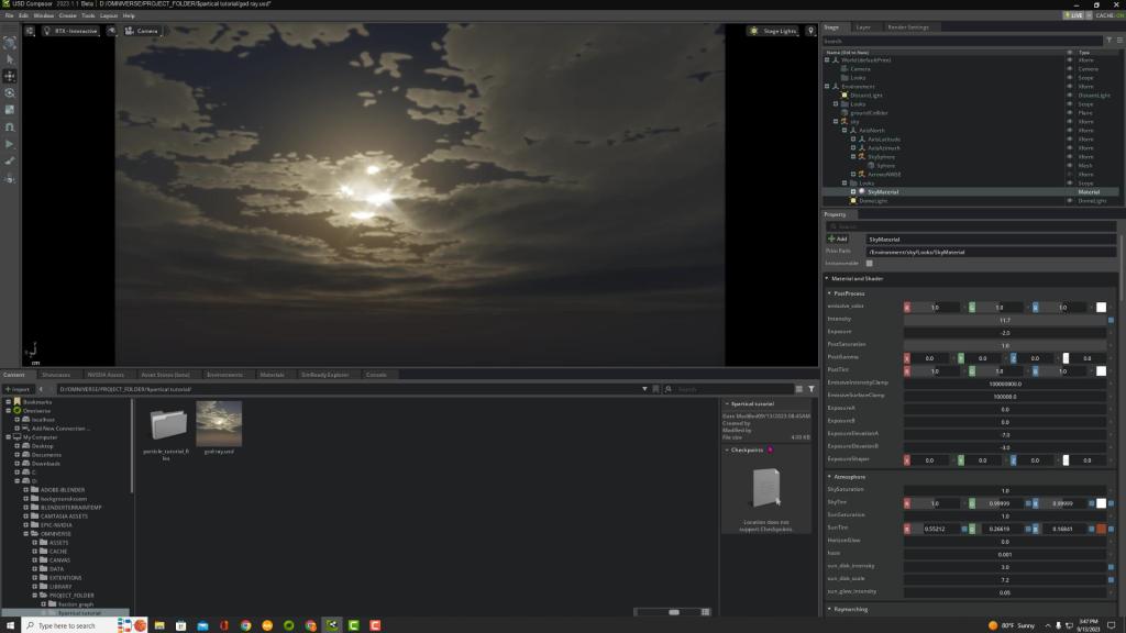 I am trying to work out how to do various cinematic effects in Omniverse. This post is one step on that journey, particularly for “God Rays” (sunbeams) through the clouds.