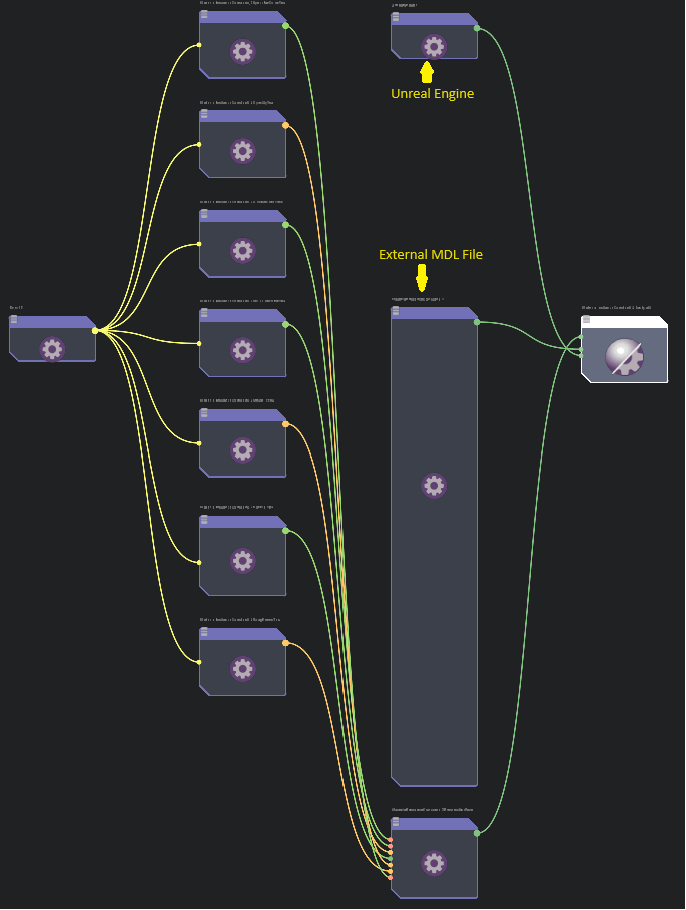 In my case, I am trying to create materials for character models created by VRoid Studio. I convert the VRM files (which are glTF files with some VRM related extensions) into OpenUSD models (meshes, skeletal rigging, blend shapes, etc) then try to convert the materials. I hook up related settings via textures or constants.