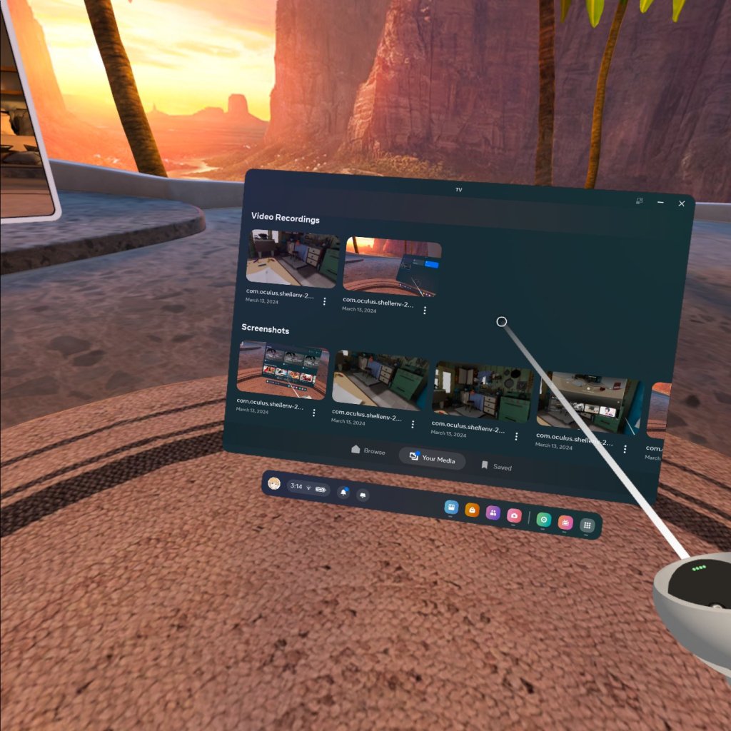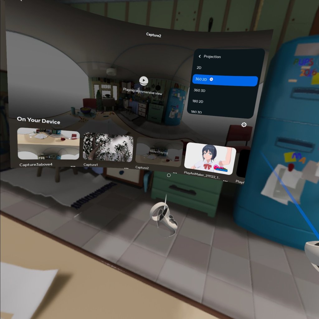 But it will display it as a flat image by default, not wrap it around the ser. My understanding is there is additional metadata that needs to be put into the image file to mark it as 3D. Luckily, the Quest 2 has a settings cog on the image where you can tell it the format. Changing it to “360 2D” let me view the spherical image in VR correctly.