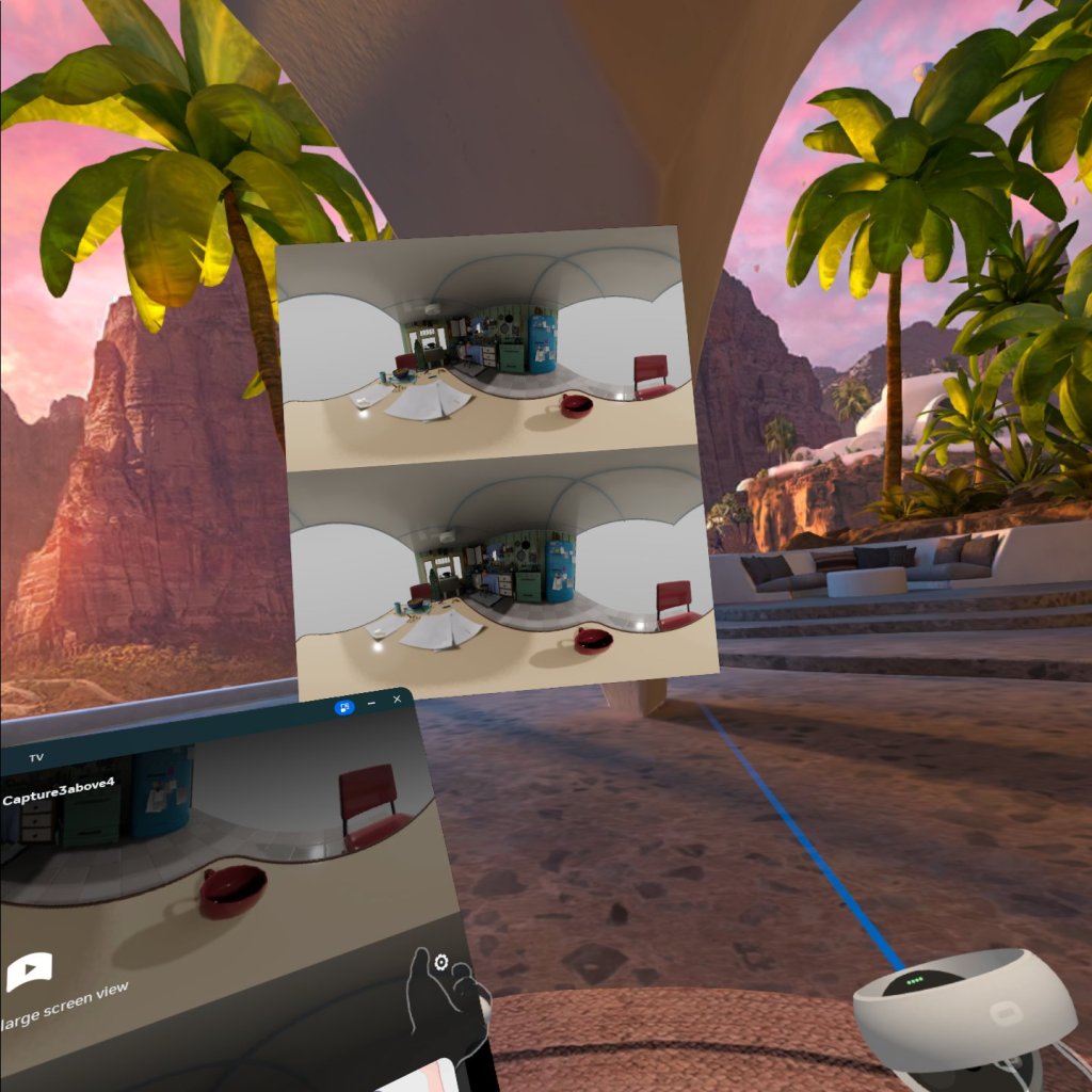 So I plan to crank up the resolution once I have it all worked out, maybe to 8K. The following screenshot is from inside the headset viewing the 360 image. You can see the quality is not great once the HD 360 image is stretched and reprojected in 3D on the Quest’s displays.
