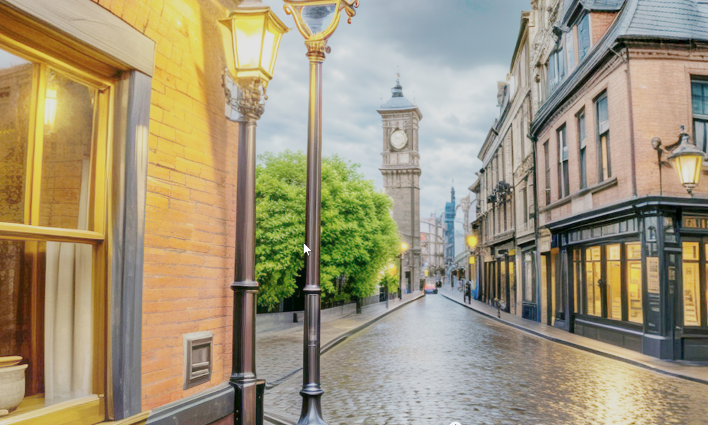 The reason for this is the way 360 images are represented. Consider the following scene of some English streets.
